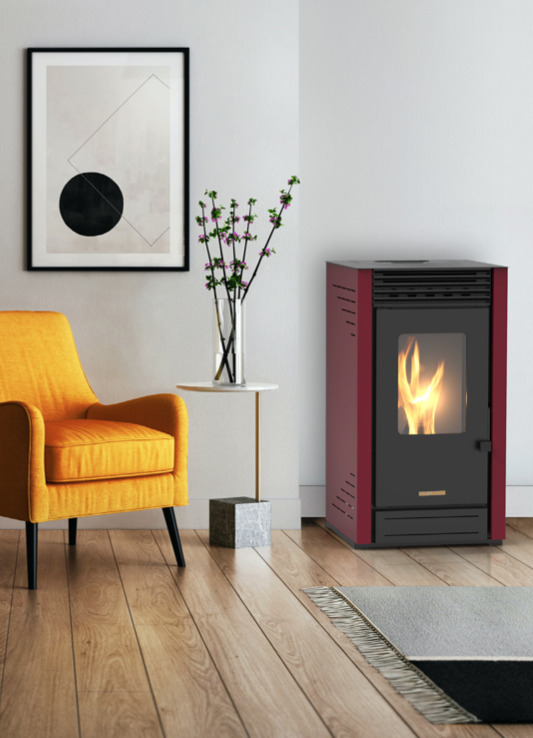 Deze pelletkachel combineert Italiaanse elegantie met praktische functionaliteit. U kunt kiezen uit drie stijlvolle kleuruitvoeringen: wit, zwart of bordeaux. Zo vindt u altijd een variant die perfect aansluit bij uw interieur.