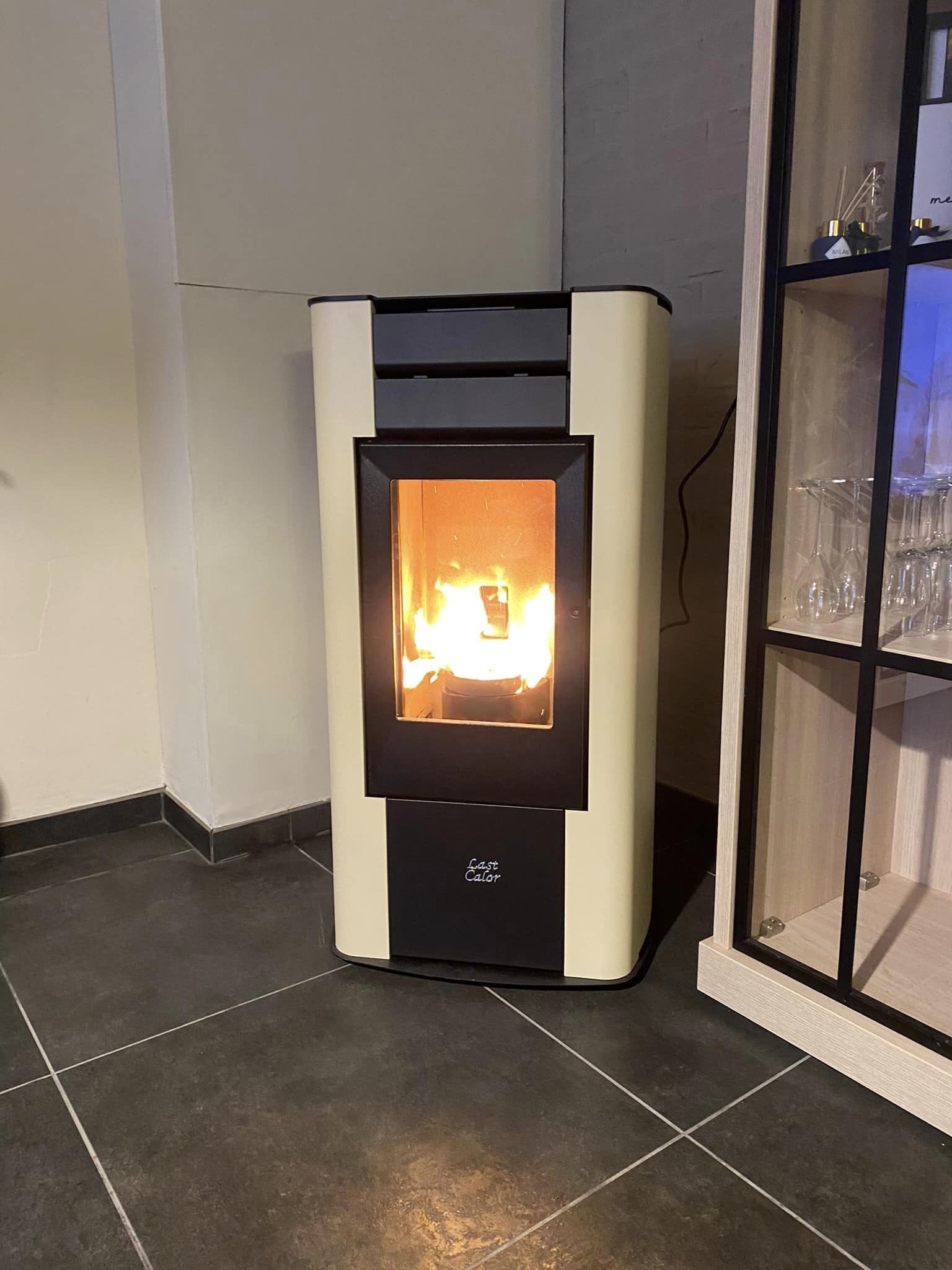 De Anselmo Cola Last Calor Viola 12 kW is een moderne en krachtige pelletkachel met een stijlvol design en hoog rendement.